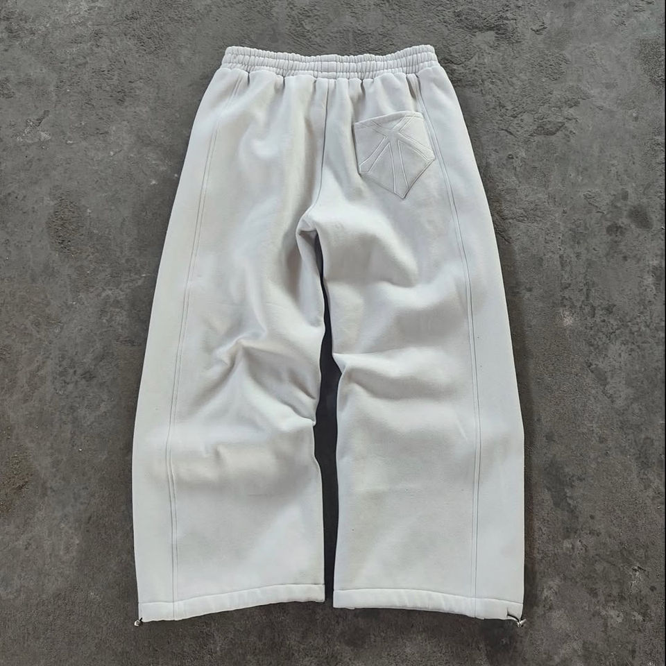 กางเกงวอร์มกางเกงขาตรงเอวสองข้างสำหรับผู้ชายกางเกงขากว้างผ้าคอตตอนสีหลวมออกแบบได้ตามต้องการ