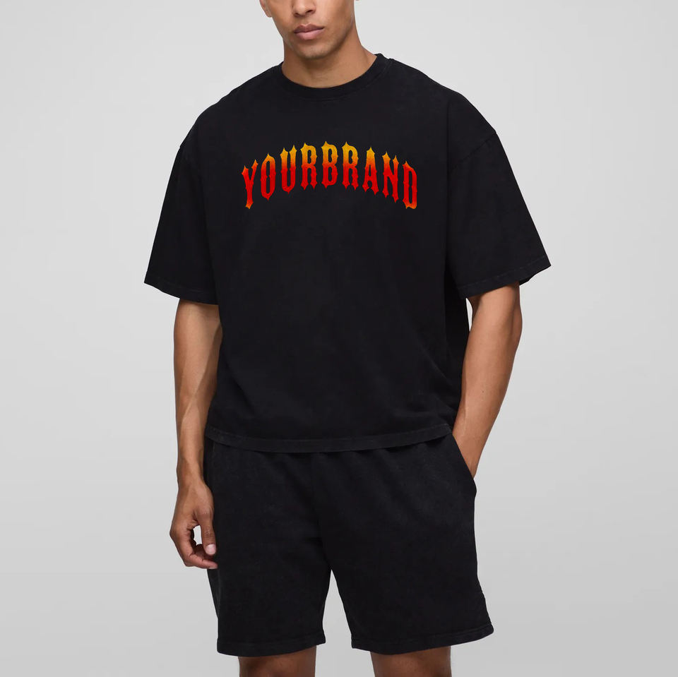 เสื้อยืดกีฬาคุณภาพสูง พิมพ์โลโก้ตามสั่ง ผ้าฝ้าย 100% น้ำหนักปานกลาง ชุดเซ็ต 2 ชิ้น ทรงปกติ สีพื้น