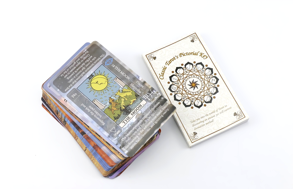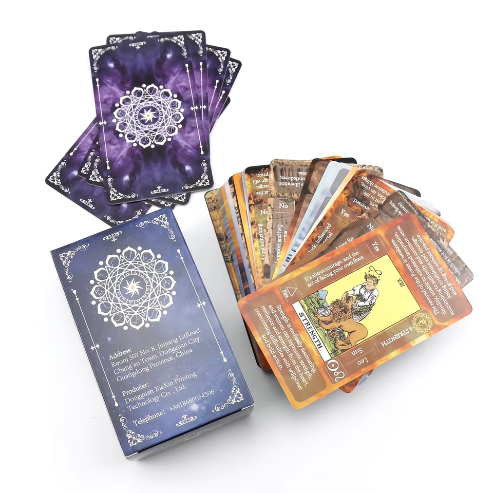 ชุดออราเคิลกระดาษศิลปะ350gsm พิมพ์ลายที่กำหนดเองคุณภาพสูงไพ่ทาโรต์78ดาวสุดหรูพร้อมไกด์และกล่องใส่การ์ด