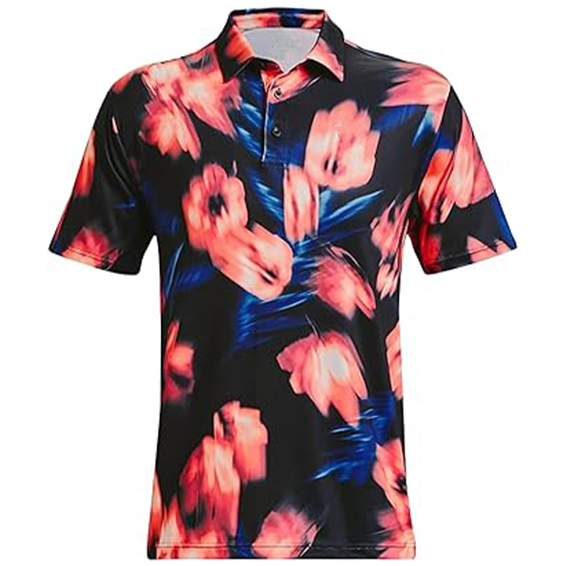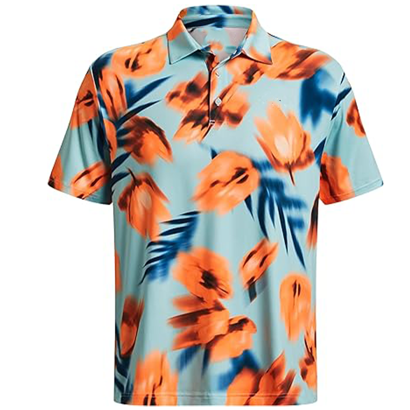 เสื้อกอล์ฟผู้ชายผ้าโพลีเอสเตอร์/คอตตอนสั่งทำพิเศษ แห้งเร็ว แขนสั้น คุณภาพสูง ผ้าแคนวาสพิมพ์ลายแบบซับลิเมชั่น ป้องกันขนร่วง