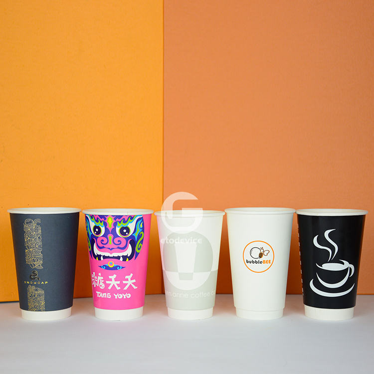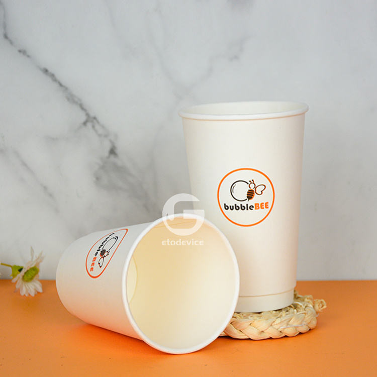 แก้วกระดาษสองชั้นคุณภาพสูงแบบกำหนดเองสำหรับเครื่องดื่มร้อน น้ำผลไม้ กาแฟ