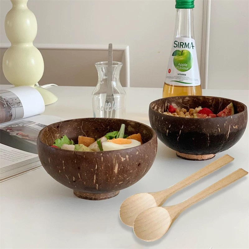 ชามกะลามะพร้าวคุณภาพสูง ทนทาน ขายส่ง ทำด้วยมือ เป็นมิตรกับสิ่งแวดล้อม สำหรับตกแต่งครัว ใช้เสิร์ฟสลัด