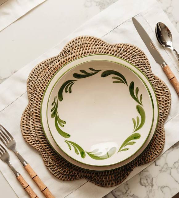 แผ่นรองจานรูปดอกไม้หวายสานคุณภาพสูง เป็นมิตรกับสิ่งแวดล้อม ดีไซน์คลาสสิก สีสันปรับแต่งได้ ตัวเลือกที่ดีที่สุดสำหรับเครื่องใช้บนโต๊ะอาหาร