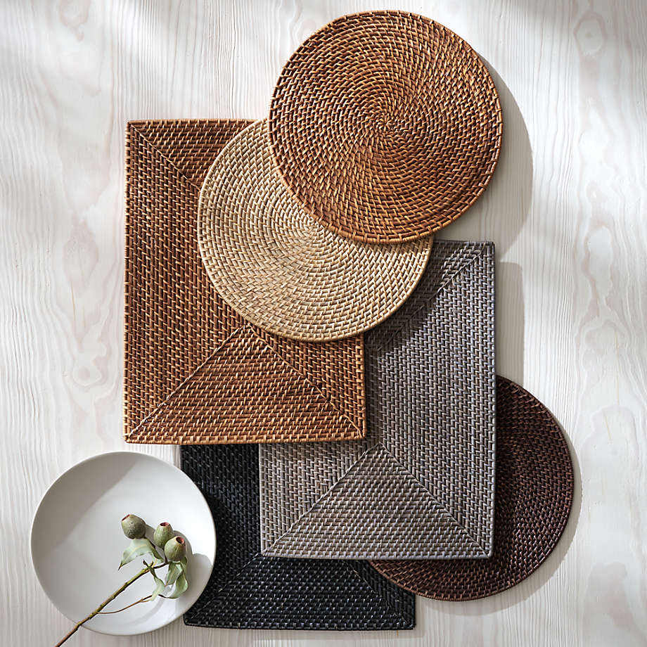 แผ่นรองจานหวายทรงกลมทำจากหวายสานด้วยมือเป็นมิตรต่อสิ่งแวดล้อมสำหรับรับประทานอาหารผลิตเพื่อการตกแต่งในเวียดนาม