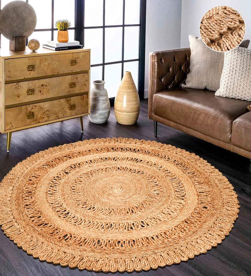 พรมหญ้าทะเลทรงกลมเป็นมิตรกับสิ่งแวดล้อมพรมทอมือสำหรับห้องนั่งเล่นผู้ผลิตตกแต่งในเวียดนาม