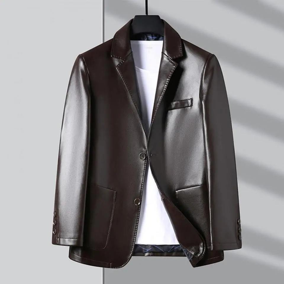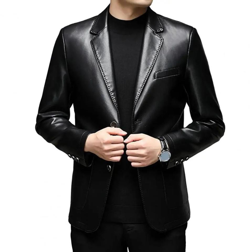 เสื้อแจ็คเก็ตผู้ชายผ้าคุณภาพสูง แจ็คเก็ตผู้ชายคอปกมีสไตล์ กระดุมข้อมือ กระเป๋า หนังเทียมสำหรับธุรกิจสำหรับกิจกรรมกลางแจ้ง