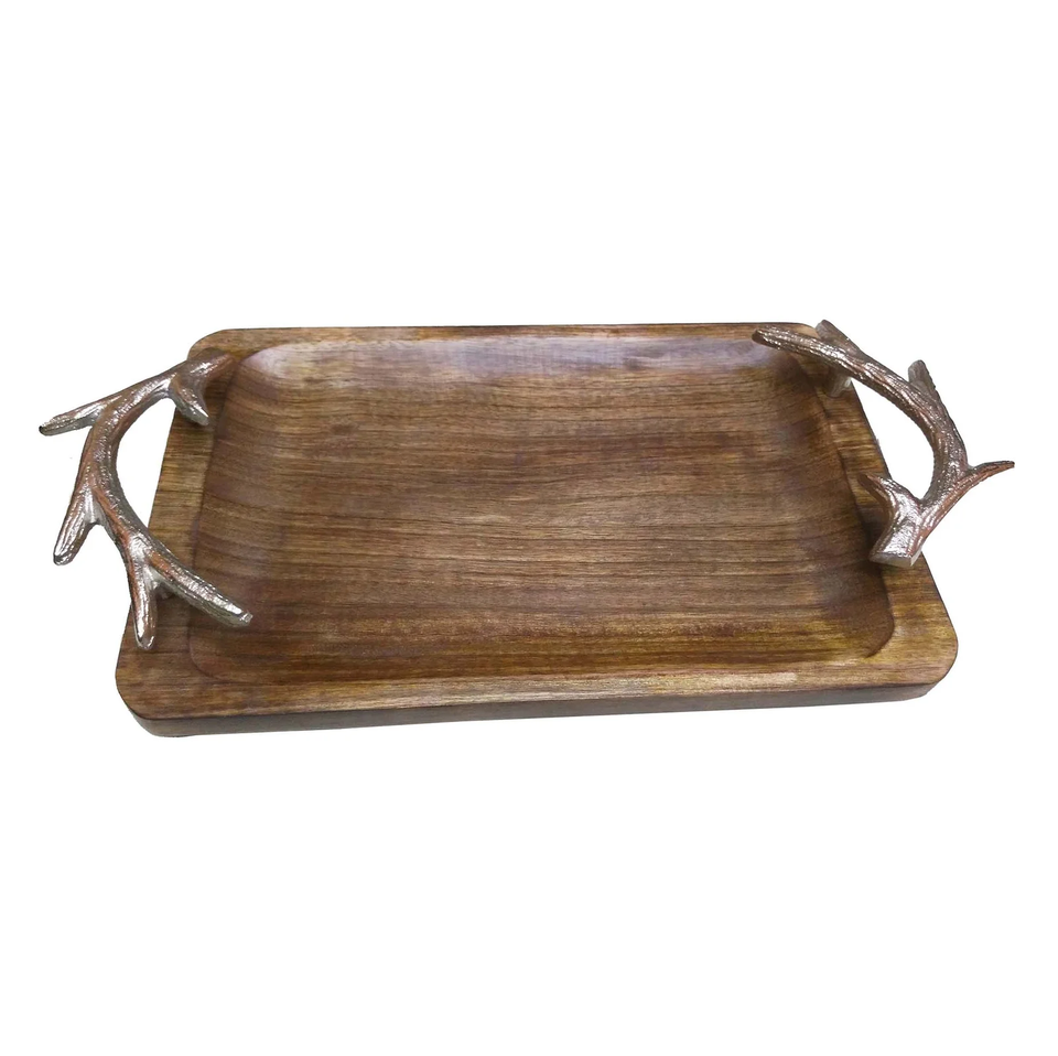 ถาดไม้คุณภาพสูงราคาโรงงานพร้อมที่จับโลหะถาดเสิร์ฟอาหารเย็นในครัวในราคาต่ําสุด