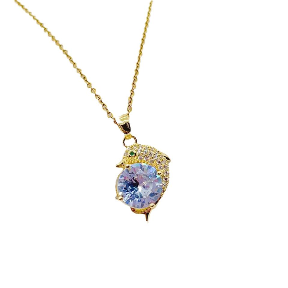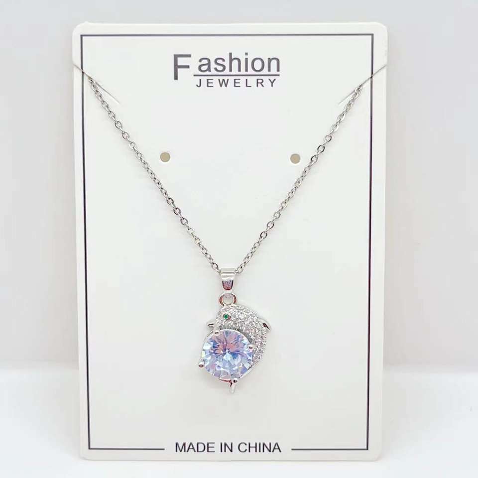 สร้อยคอสแตนเลสสำหรับผู้หญิงดีไซน์ใหม่ล่าสุดสร้อยคอหรูหราไฟปลาโลมาเพทาย
