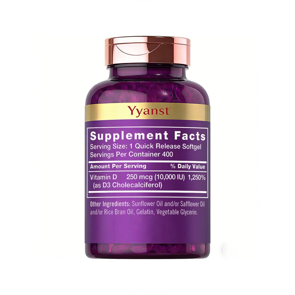 วิตามินดี3 คุณภาพสูง ปราศจากกลูเตนและถั่วเหลือง ความเข้มข้นสูงสุด ช่วยเสริมสร้างภูมิคุ้มกันและสุขภาพกระดูก ช่วยเพิ่มการดูดซึมแคลเซียม ชนิดซอฟเจล