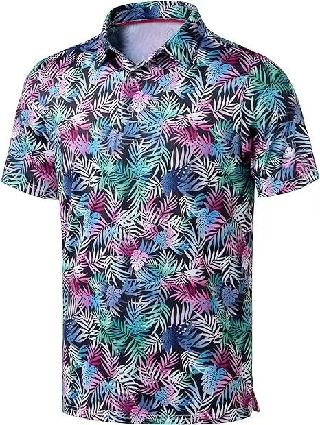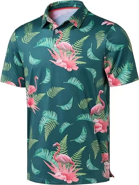 เสื้อกอล์ฟผู้ชายคุณภาพสูง ผ้าถักเนื้อแน่น ป้องกันรอยยับ พร้อมโลโก้พิมพ์ดิจิทัลตามสั่ง ผ้าฝ้าย 100% ขั้นต่ำในการสั่งซื้อน้อย