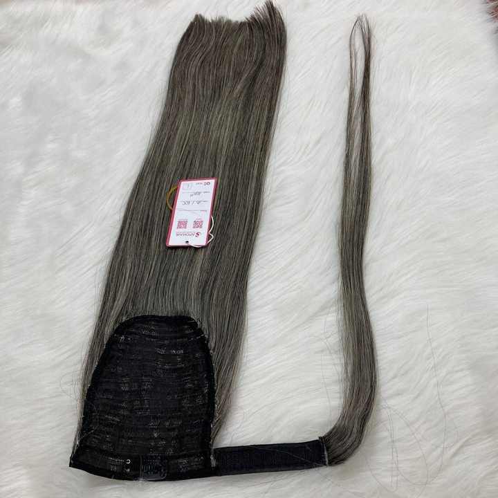 ผมหางม้าสีเทา,ผมดำบลอนด์น้ำตาลหนังกำพร้าชิดจากเส้นผมมนุษย์100% ไม่พันกันไม่หลุดร่วง