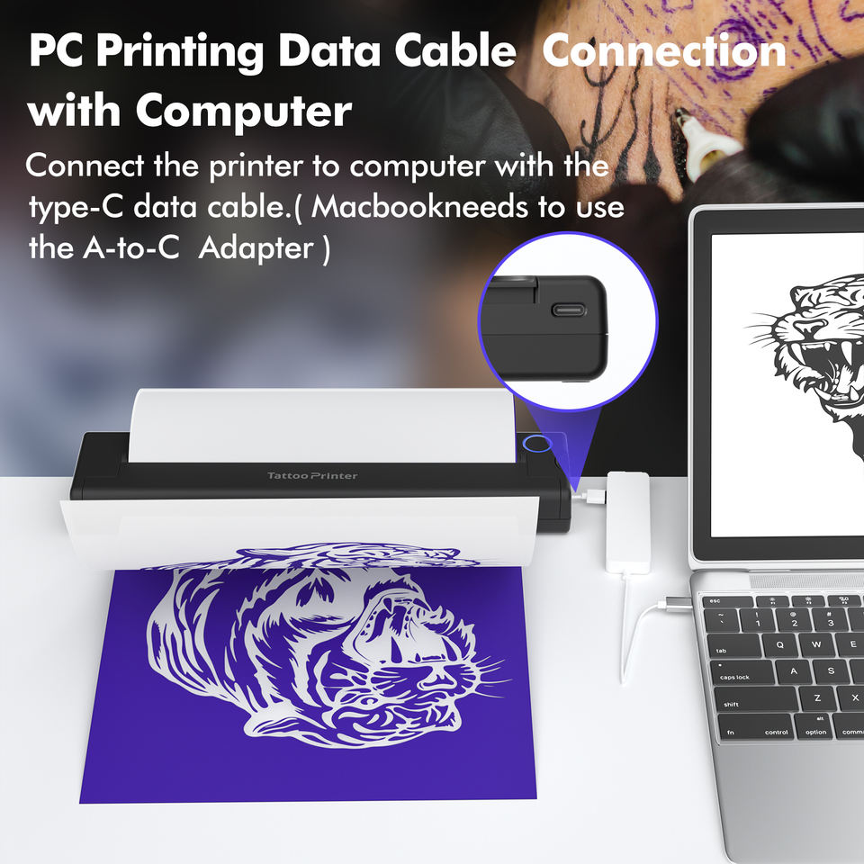 เครื่องพิมพ์ลายสักแบบพกพาคุณภาพสูง รองรับระบบ IOS/Android สำหรับโรงงานผลิตแบบครบวงจรในกลุ่มธุรกิจความงาม
