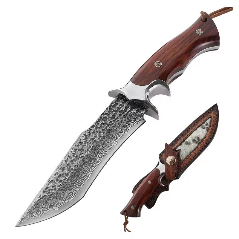 มีดพกพาคุณภาพสูง ทำด้วยมือจากเหล็กกล้าไร้สนิม ใบมีดหยักแบบ Fixed Clip Point ด้ามไม้ เหมาะสำหรับกิจกรรมกลางแจ้ง แคมป์ปิ้ง เอาตัวรอด และเป็นของขวัญ
