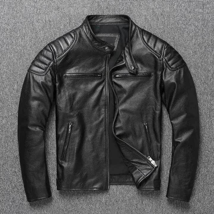 เสื้อแจ็กเก็ตหนังสำหรับผู้ชายเสื้อแจ็กเก็ตหนังวัวสำหรับนักขี่จักรยาน