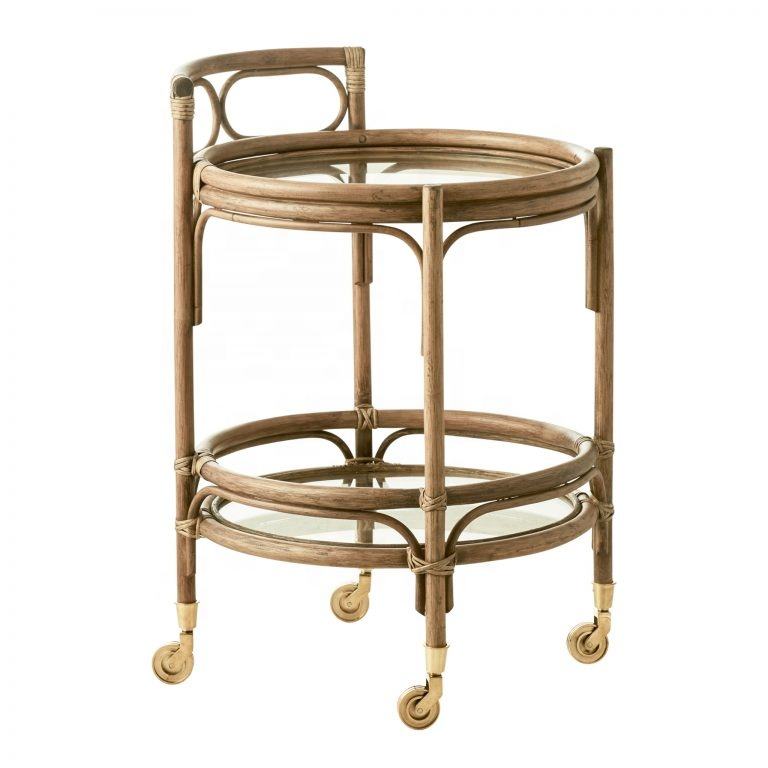 รถเข็นหวายธรรมชาติสำหรับร้านอาหารโรงแรมวิลล่ารถเข็นบาร์ทำด้วยมือ