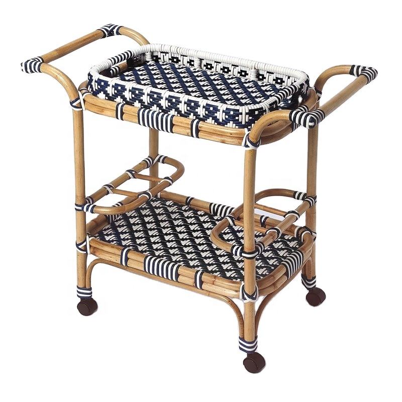 รถเข็นบาร์หวายธรรมชาติคุณภาพสูง ผลิตภัณฑ์ขายดี งานแฮนด์เมดจากเวียดนาม สำหรับร้านอาหาร โรงแรม และวิลล่า