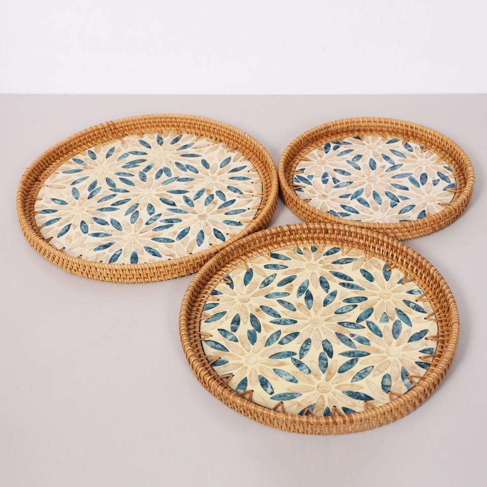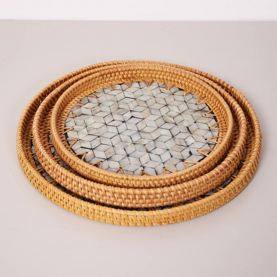 ชุดถาดไม้ม็อบหวายคุณภาพสูงถาดรองน้ำไข่มุกเครื่องประดับกล่องใส่เครื่องดื่ม
