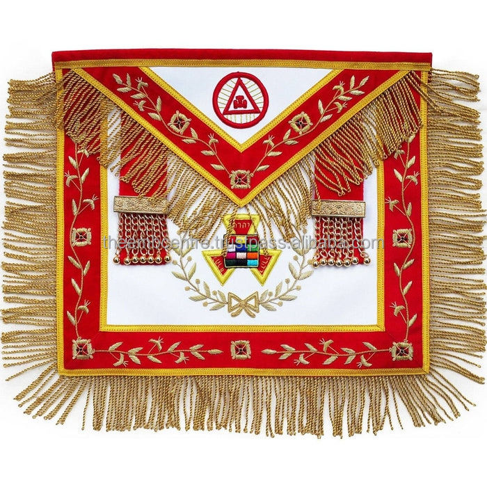 ที่มีคุณภาพสูงเครื่องราชกกุธภัณฑ์อิฐที่ผ่านมาสูงพระราชคณะผ้ากันเปื้อนกำมะหยี่สีแดงที่มีแถบด้านข้างขายส่ง