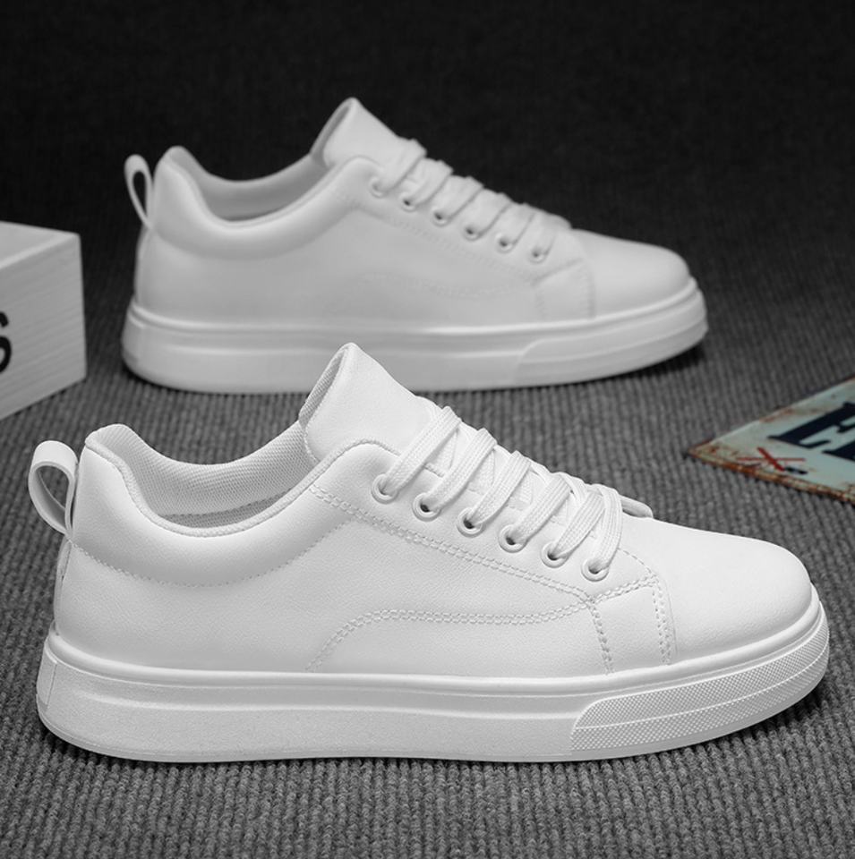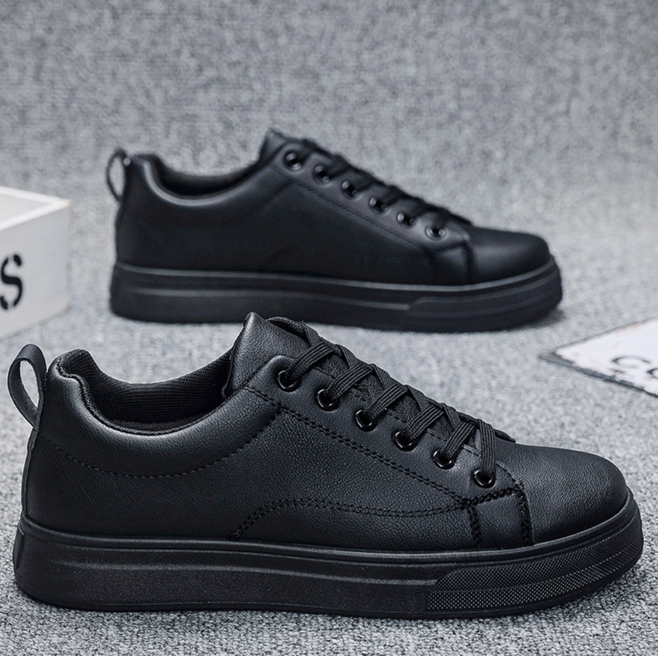 รองเท้าบอร์ดสำหรับผู้ชายรองเท้ากีฬาพื้นหนาหนัง PU กันลื่นสีทึบ