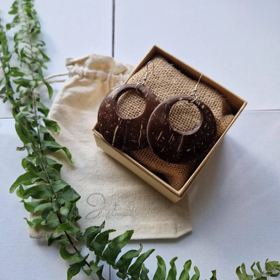 ชื่อผลิตภัณฑ์:ต่างหูห่วงกะลามะพร้าวธรรมชาติ