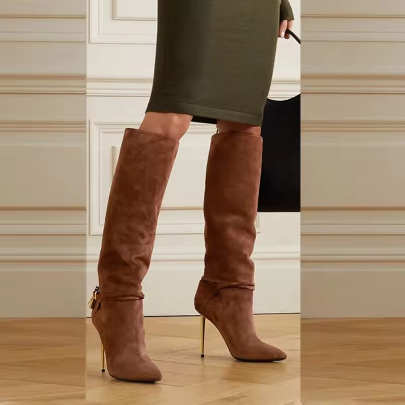 รองเท้าบูทคุณภาพสูงแบบสวมเหนือเข่าสำหรับผู้หญิง รองเท้าบูทสูงถึงเข่า ไซส์ใหญ่ 46 รองเท้าส้นสูง ปลายแหลม สวมใส่ง่าย รองเท้าบูทยาว
