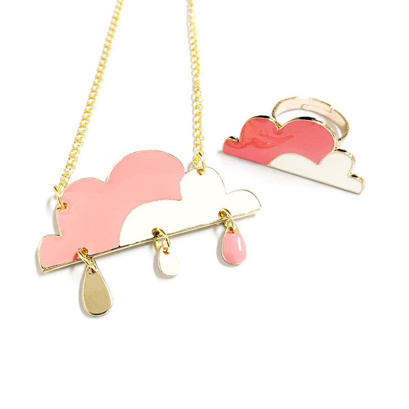 ชุดเครื่องประดับสเตนเลสเคลือบสีพร้อมจี้รูปหมีของขวัญสำหรับเด็กผู้หญิงสร้อยคอและต่างหู