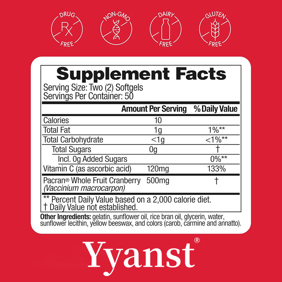 วิตามินซีและแครนเบอร์รี่คุณภาพสูงแบบฉลากส่วนตัว บรรเทาอาการไม่สบายทางท่อปัสสาวะและช่วยปรับปรุงสุขภาพกระเพาะปัสสาวะ ชนิดแคปซูลนิ่ม