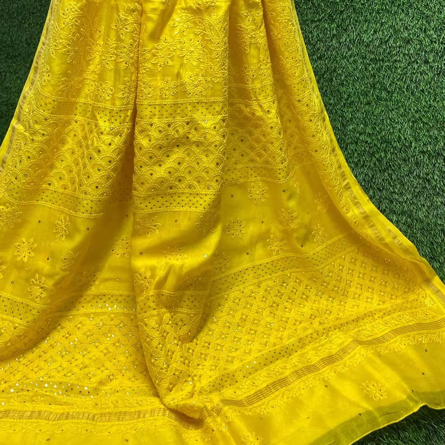 ผ้าส่าหรีผ้าไหมแท้คุณภาพสูงสำหรับใส่ในงานปาร์ตี้สไตล์ดั้งเดิมลัคเนา