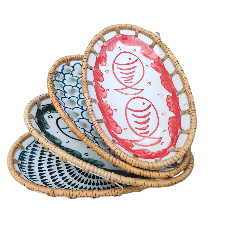 เครื่องลายครามหวายคุณภาพสูงทอรวมกันเก็บผลไม้แห้งไม้ไผ่ทอแผ่นชาร์จผลไม้โต๊ะผลไม้แห้งในเวียดนาม