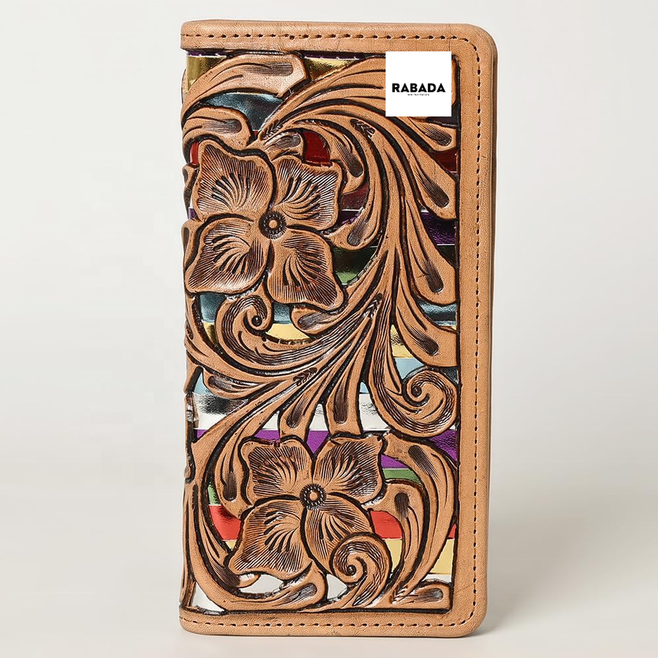 กระเป๋าสตางค์หนังยาวสไตล์ตะวันตกแกะสลักด้วยมือสไตล์วินเทจทำด้วยมือกระเป๋าสตางค์หนังเครื่องมือสั่งทำ