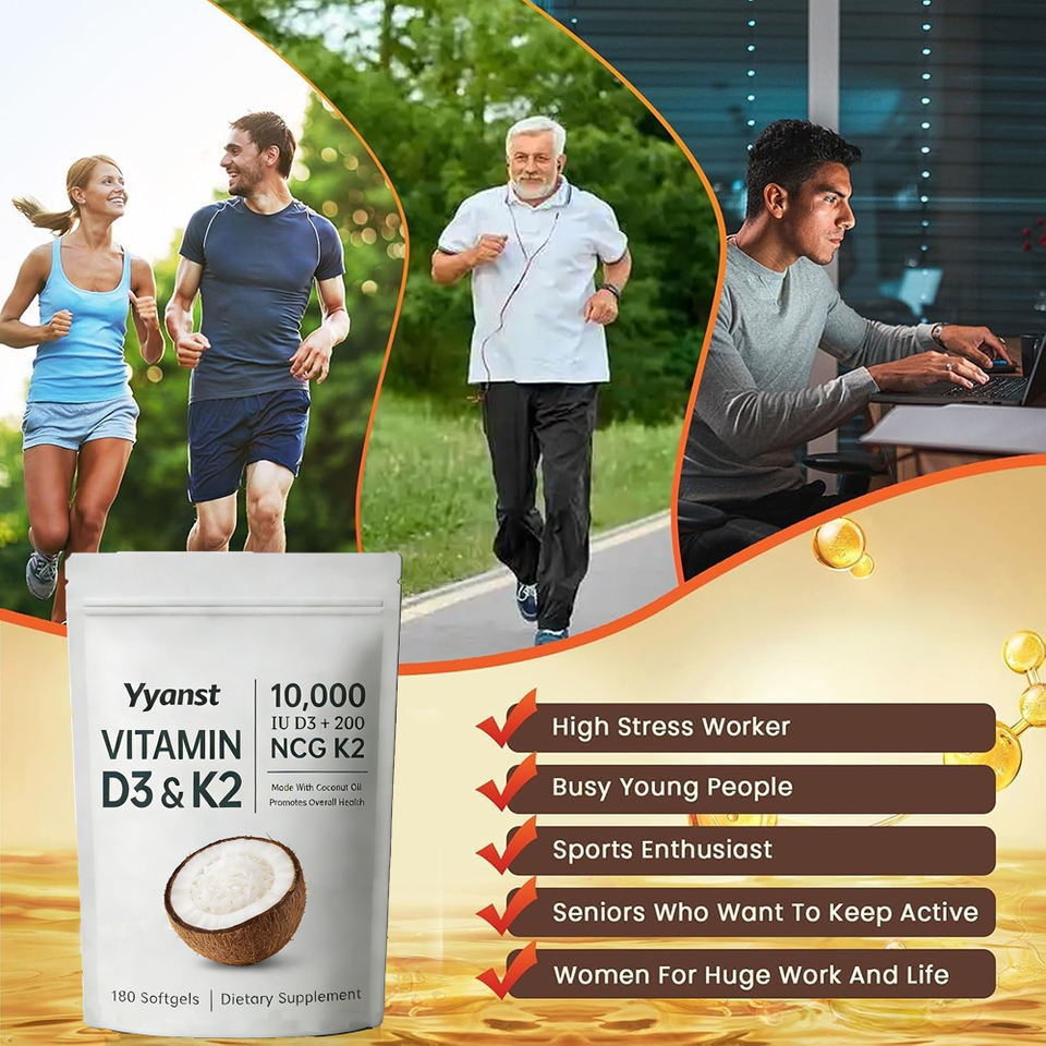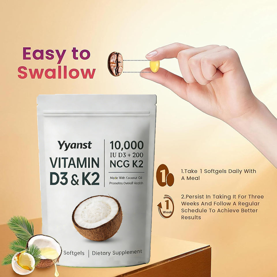 วิตามินดี3 วิตามินเค2 และน้ำมันมะพร้าวคุณภาพสูงในรูปแบบซอฟเจล ช่วยเสริมสร้างสุขภาพกระดูกและหัวใจ บำรุงสุขภาพหัวใจ
