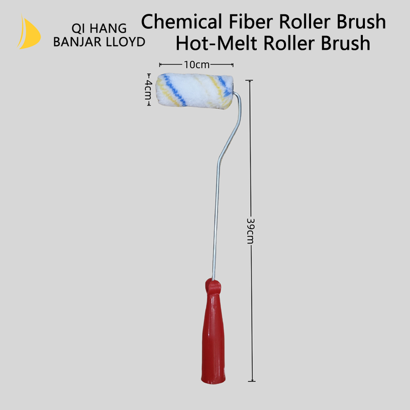 แปรงลูกกลิ้งพลาสติกสำหรับตกแต่งผนังคุณภาพสูง ผสมใยเคมีแบบละลายด้วยความร้อนและลายเส้นสีน้ำเงิน