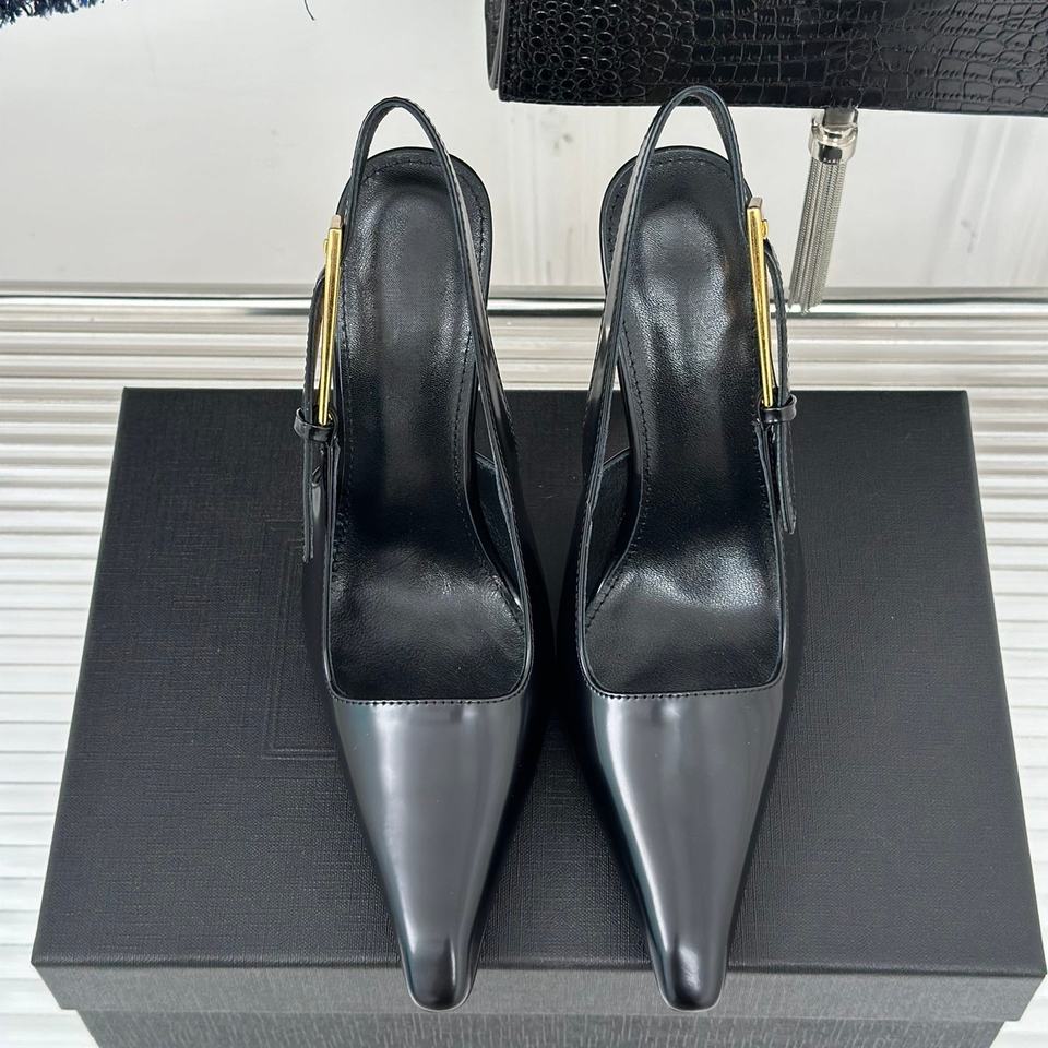 รองเท้าส้นสูงหัวแหลมประดับหัวเข็มขัดโลหะคุณภาพสูงสำหรับผู้หญิง รองเท้าส้นเข็มแบบเปิดข้าง ดีไซน์เซ็กซี่ ขายส่ง