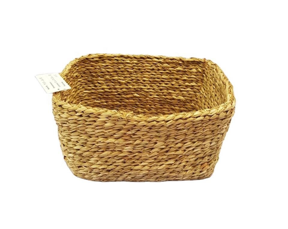 ตะกร้าเก็บของสานจากหญ้าทะเลคุณภาพสูง เป็นมิตรกับสิ่งแวดล้อม ทนทาน ทำด้วยมือ ได้รับการรับรองมาตรฐาน CE ปรับแต่งขนาดและโลโก้ได้ ใช้ใส่ผลไม้หรือขนม