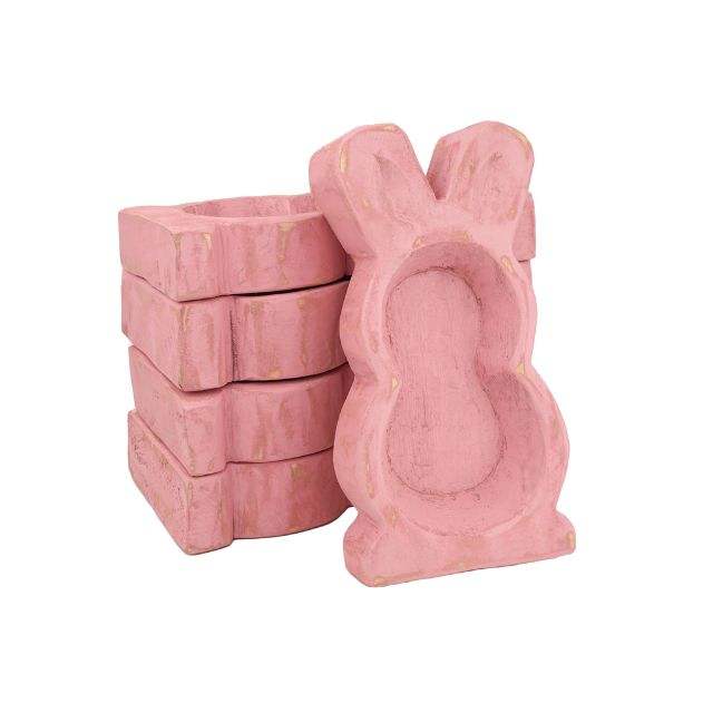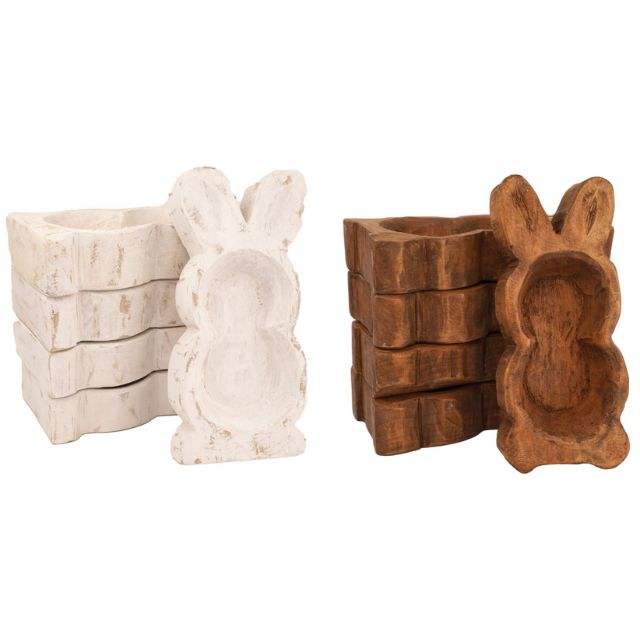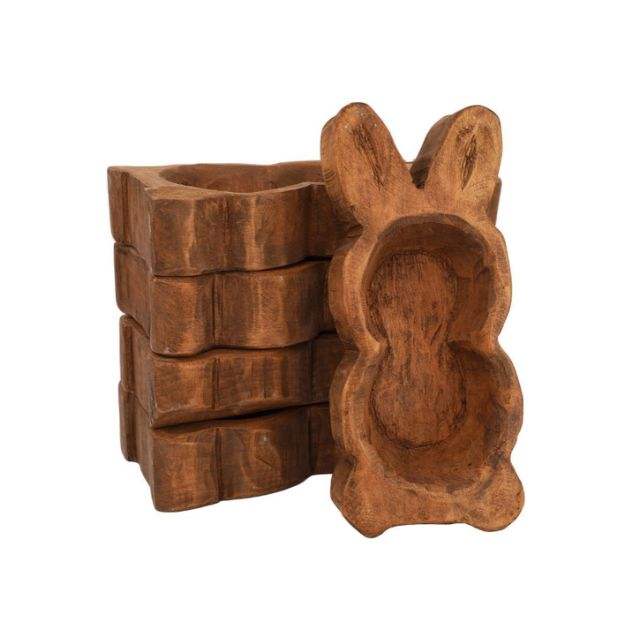 Acacia wooden dough candle bowl with bunny shape for Easter