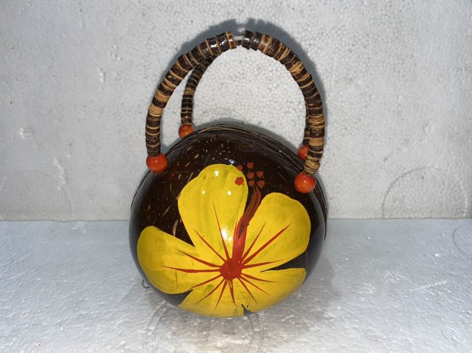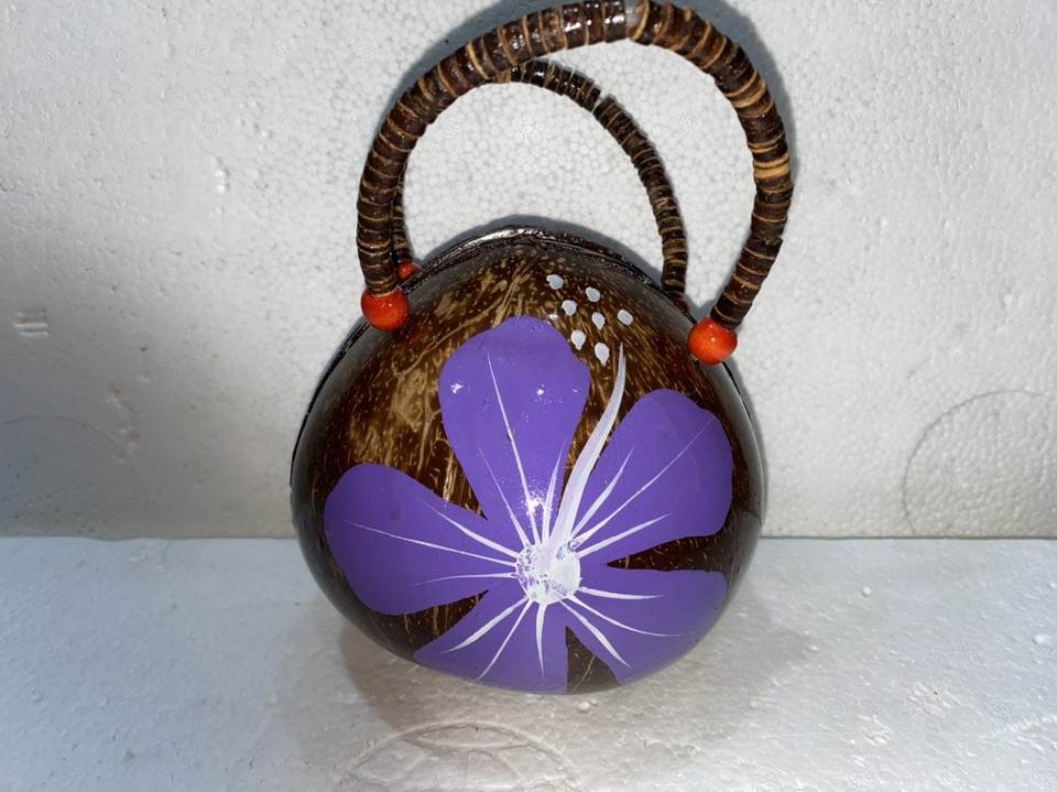 กระเป๋ามะพร้าวทำด้วยมือคุณภาพสูงกระเป๋าฮาวายอโลฮาแบบมีซิปและซับในทาสีด้วยดอกไม้