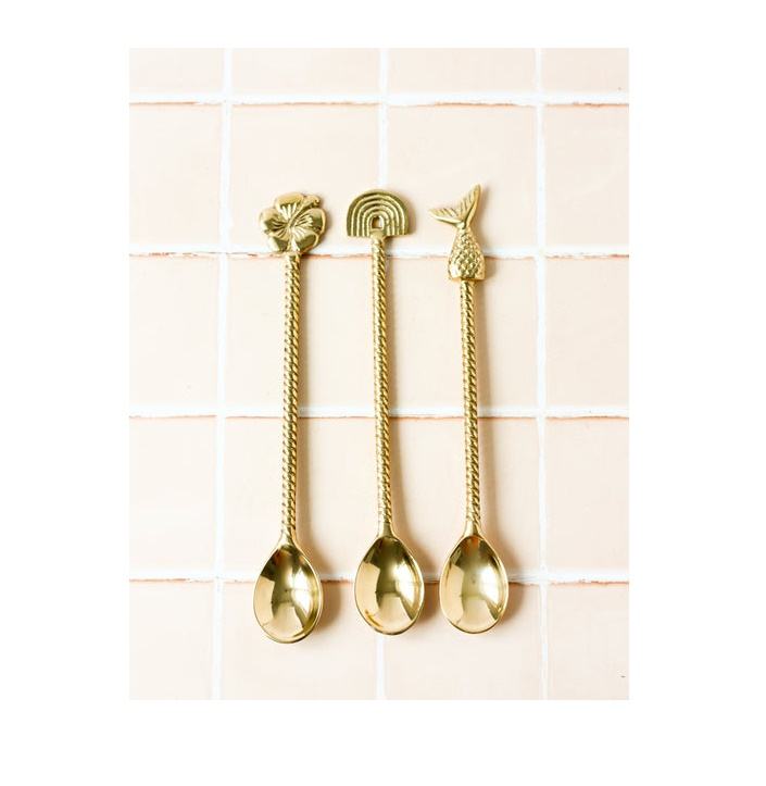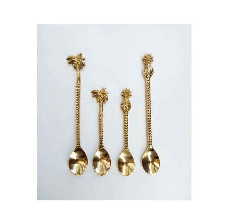 ช้อนทองเหลือง Masala เครื่องใช้ในครัวช้อนช้อนช้อนหนาด้ามยาวเครื่องใช้บนโต๊ะอาหารดีไซน์เรียบง่าย3แบบ