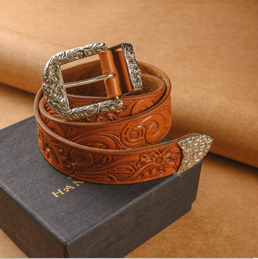 เข็มขัดหนังสีน้ำตาลคุณภาพสูงพร้อมหัวเข็มขัดสีเงินเงาเหมาะสำหรับสไตล์ลำลองและเป็นทางการราคาขายส่ง