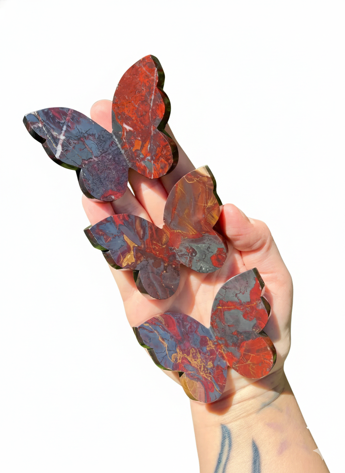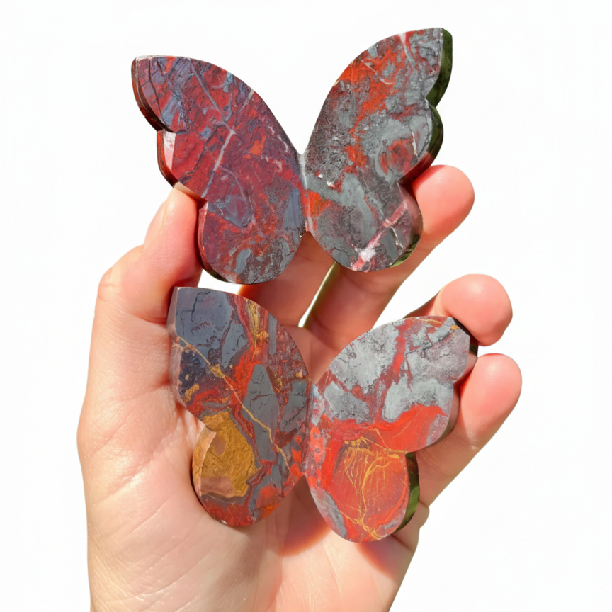 คริสตัลคุณภาพสูงรูปผีเสื้อเฮมาไทต์พร้อมหินแจสเปอร์สีแดง ปีกแกะสลักรูปผีเสื้อ 3 มิติ และของตกแต่งบ้าน