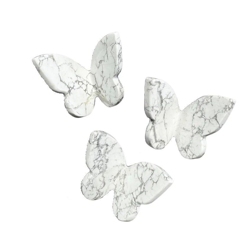หินฮาวไลท์สีขาวรูปผีเสื้อคริสตัลคุณภาพสูง ปีกแกะสลักรูปผีเสื้อ สำหรับตกแต่งคริสต์มาสและบ้าน