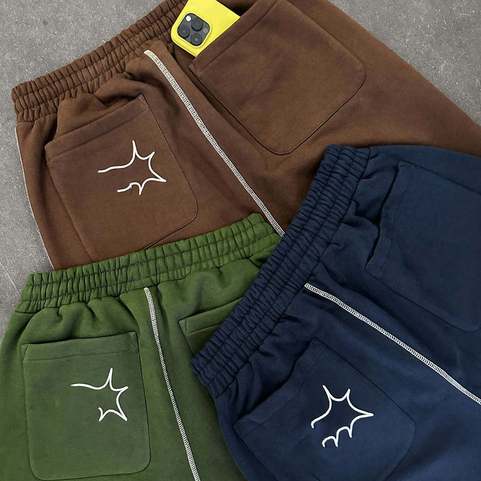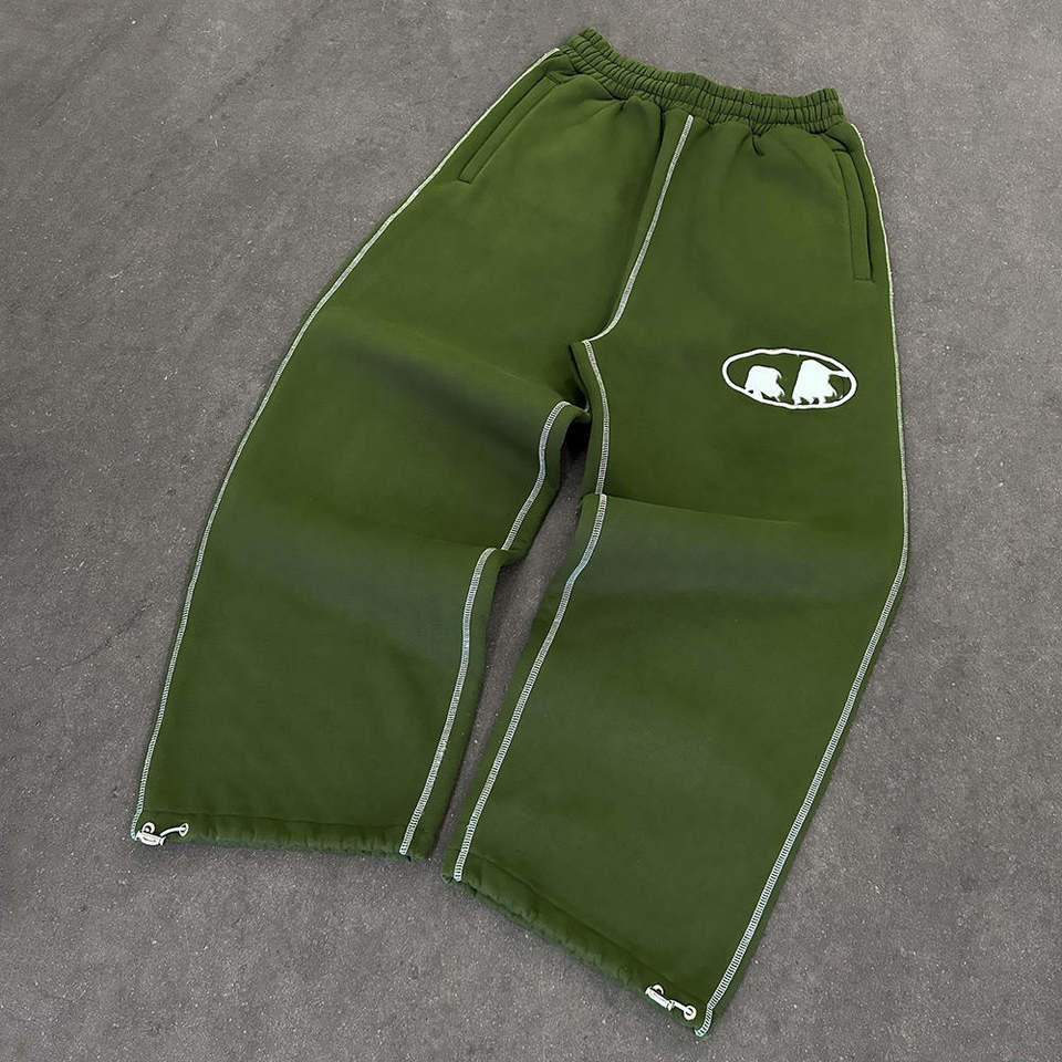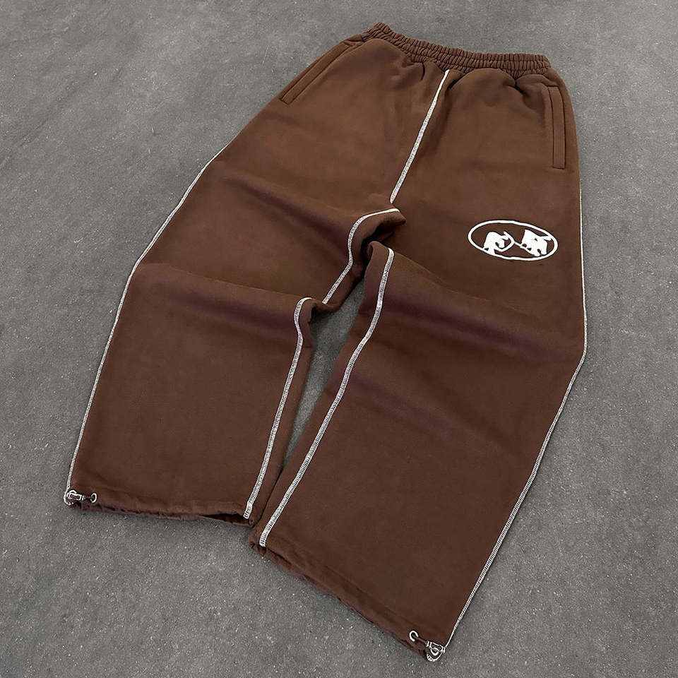กางเกงวอร์มทรงแบ็กกี้ของผู้ชายกางเกงวิ่งเทอร์รี่โอเวอร์ไซส์เย็บขากว้างดีไซน์ไซส์พิเศษสำหรับฤดูหนาว
