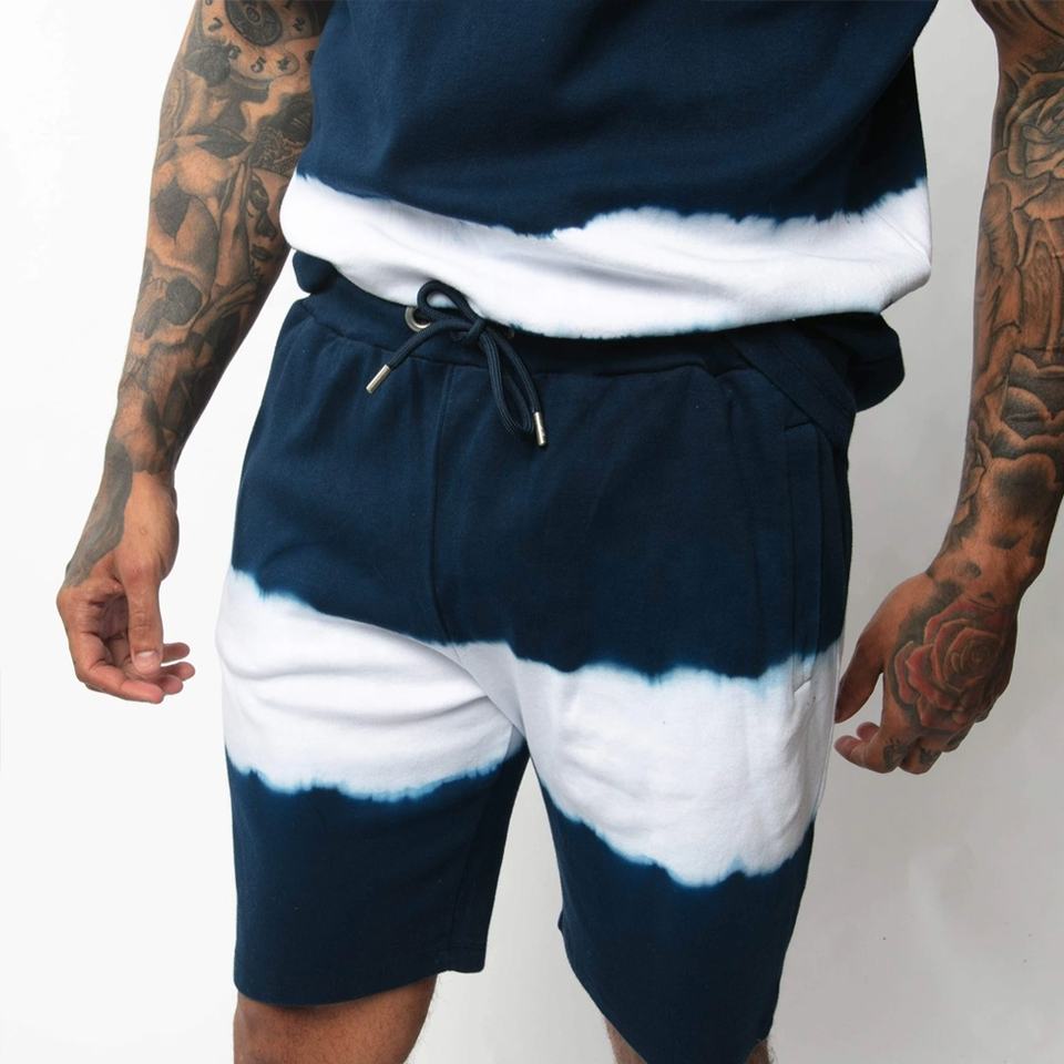ชุดวอร์มแขนสั้นของผู้ชายชุดวอร์มผ้าฝ้าย2ชิ้นชุดเดินชายหาดสำหรับฤดูร้อน