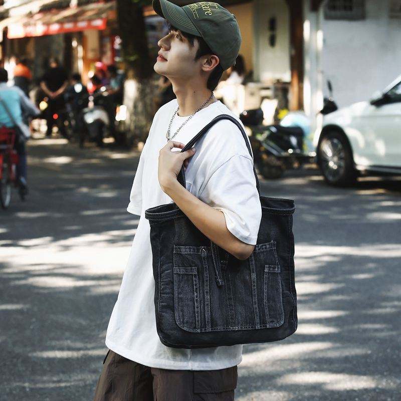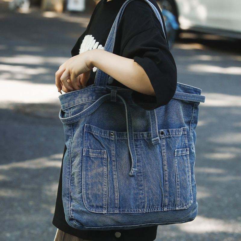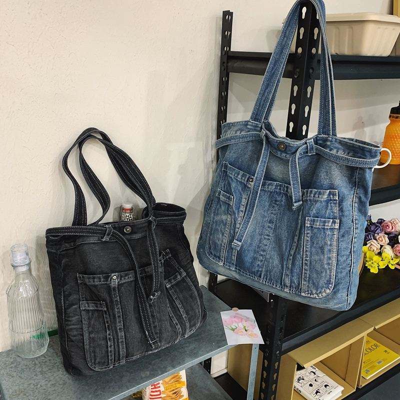 กระเป๋าสะพายไหล่ผู้หญิงผ้าเดนิมสไตล์ดีไซเนอร์คุณภาพสูงสไตล์เรโทรสีกลาง