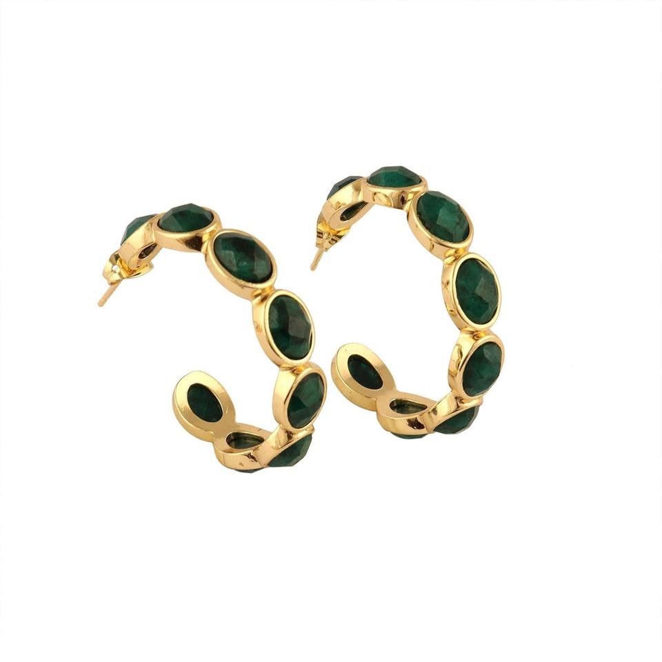 ต่างหูห่วงประดับมรกตหลากสีคุณภาพสูง ชุบทอง 18k ทำจากทองเหลืองแท้ เครื่องประดับแฟชั่นสำหรับผู้หญิง