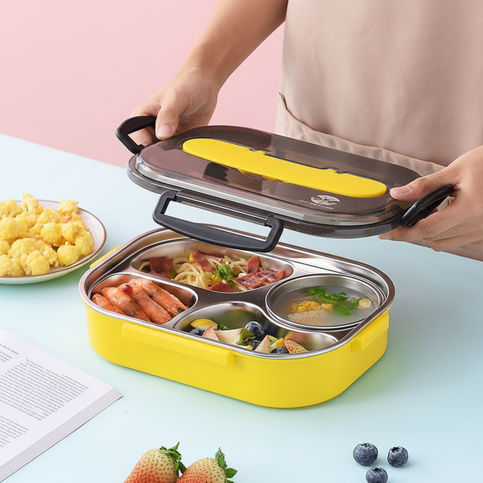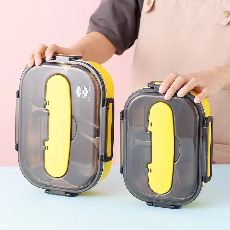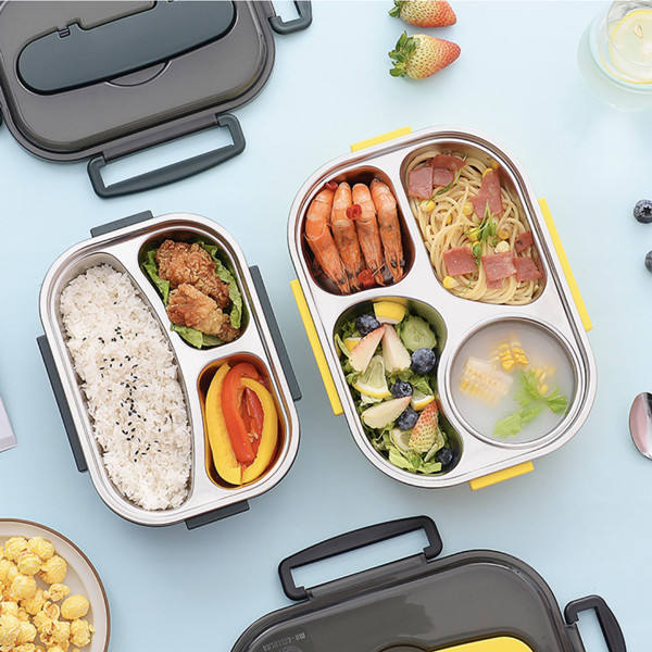 กล่องข้าวสแตนเลสคุณภาพสูง ฝาพลาสติกเก็บความร้อน ทนความร้อน ป้องกันการรั่วซึม ปลอดสาร BPA 3 ช่อง พับเก็บได้