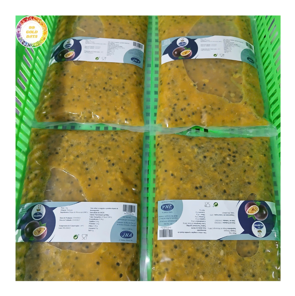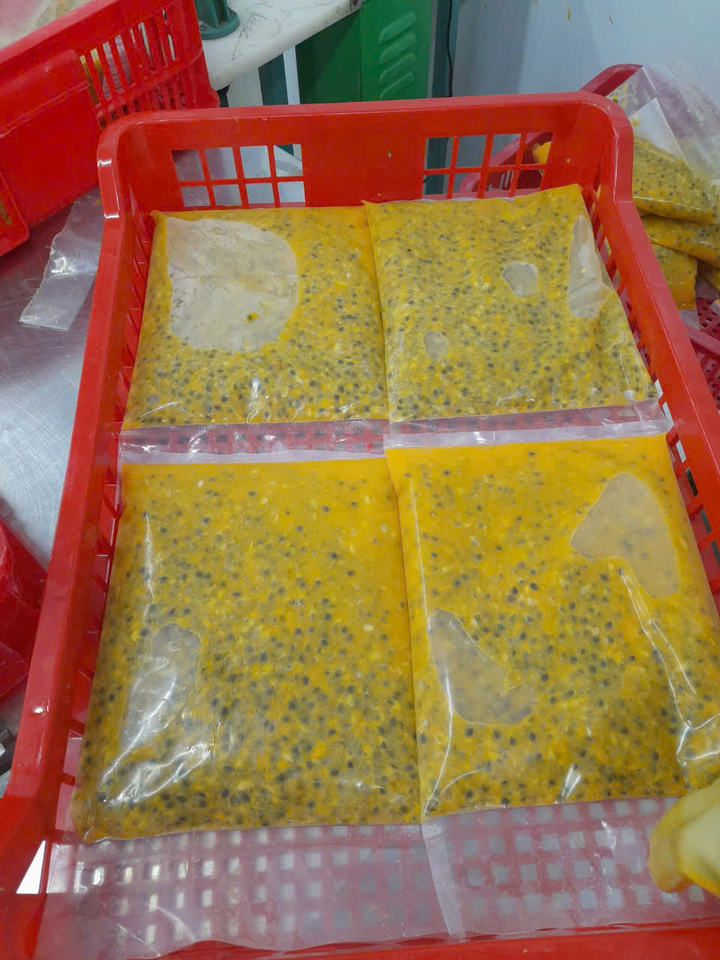 เยื่อเสาวรสแช่แข็งเข้มข้นสำหรับการผลิตเครื่องดื่มและของหวานแพ็คจำนวนมากเพื่อการส่งออก