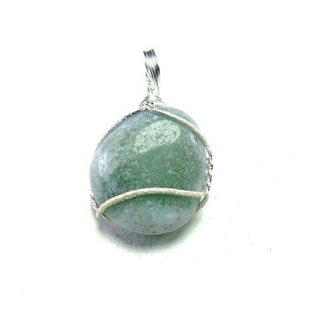 สร้อยคอหินควอตซ์สไตล์คลาสสิกจี้ลวดเคลือบสีเขียวหินอัญมณีหินบำบัด