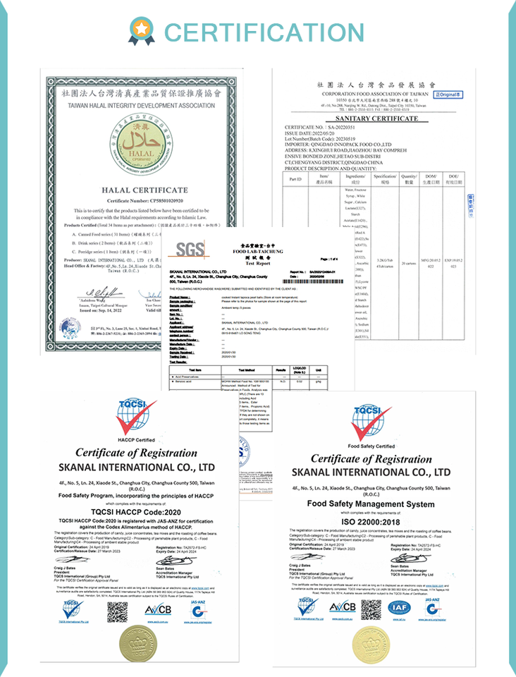 วัตถุดิบและการรับรองตลาด:ออร์แกนิก (USDA / EU / JAS) / ไม่มีการตัดแต่งพันธุกรรม / วีแกน