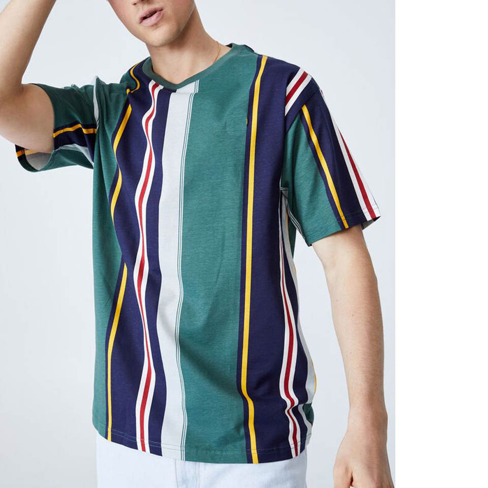 High Quality High Class Men Striped t Shirt with Round Neck Custom Label