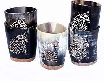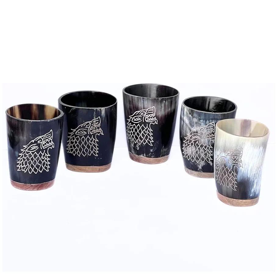 แก้วช็อตทรงเขาสัตว์ทำมือ FAIZA CRAFT งานฝีมือโบราณ ขอบทองเหลืองขัดเงา สำหรับงานปาร์ตี้ยามค่ำคืน วิสกี้ เหล้า คริสต์มาส